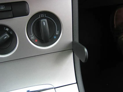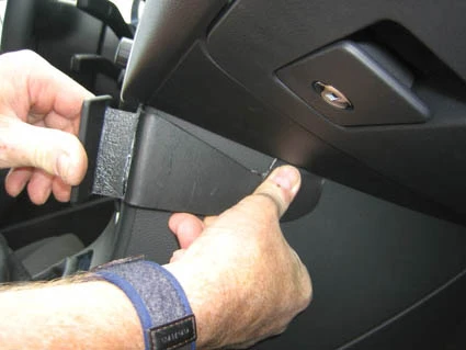 Press the long right end of the ProClip into the gap between the dashboard surrounding the glove compartment and the center console side wall.