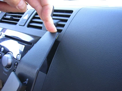 Press the thin end of the enclosed gap opener into the gap between the air vent and the surrounding frame. Peel off the adhesive tape covers on the ProClip.