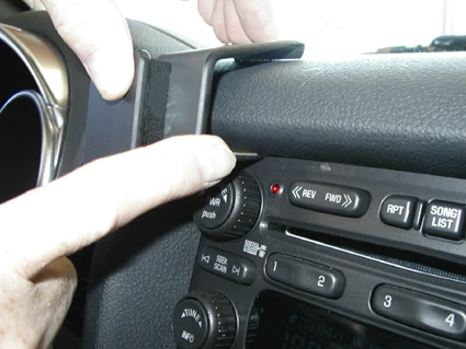 Press firmly forward on the upper part of the ProClip so the angled edge goes into the gap in the dashboard. Press down on top of the ProClip to make sure the angled edge is all the way into the gap.