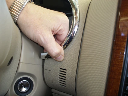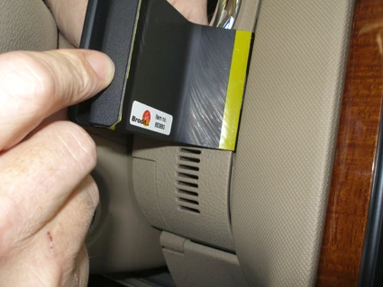 Hook the angled edge on the right side of the ProClip over the center console edge by the stereo/air vent.