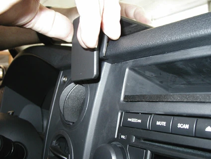 Place/hook the angled edge on the lower part of the ProClip under the dashboard overhang.