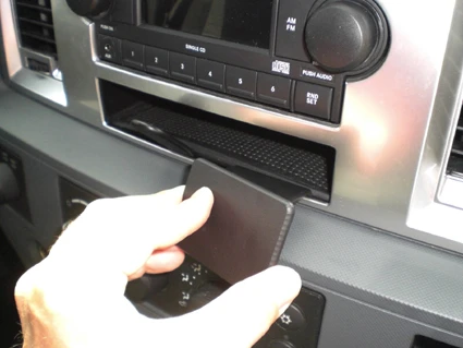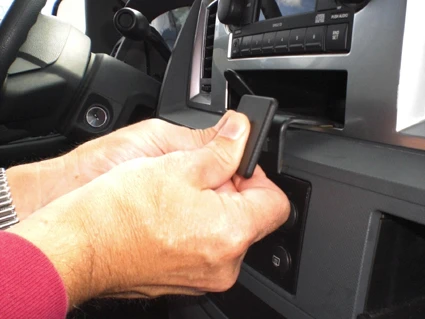 Place your fingers around the ProClip and pull so the ProClip flexes slightly towards you. Then hook/press it into the seam between the climate control panel and the surrounding panel frame. Pull out the gap opener.