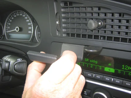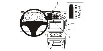 Press the thin end of the enclosed gap opener into the gap between the stereo and the surrounding panel, to widen the gap. Peel off the adhesive tape cover on the ProClip. Press the curved edge on the lower part of the ProClip into the gap next to the gap opener.