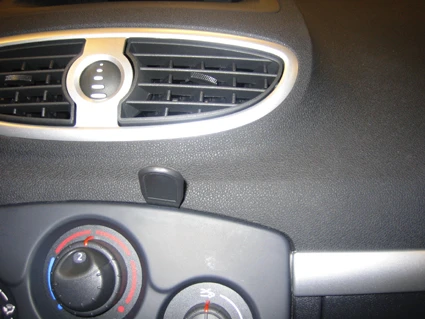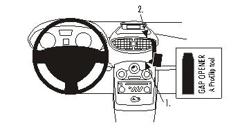 Press the thin end of the enclosed gap opener into the gap between the control panel and the dashboard, to widen the gap. Peel off the adhesive tape covers on the ProClip. Press the curved edge on the lower part of the ProClip into the gap next to the gap opener.