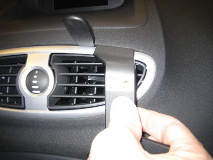 Press the gap opener into the gap between the air vent frame and the dashboard. Press forwards on the upper part of the ProClip so the angled edge goes into the gap next to the gap opener. Press downwards on top of the ProClip so the angled edge goes all the way into the gap. Pull out the gap opener.