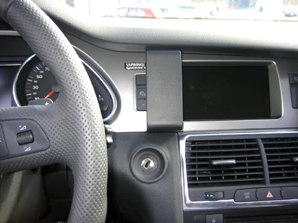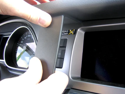 Press the gap opener into the gap between the frame surrounding the display and the dashboard. Press the gooved edge on the lower part of the ProClip into the gap next to the gap opener. Press until you hear/feel it snaps into place. Pull out the gap opener.