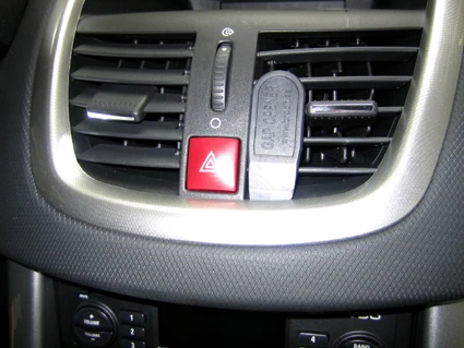 Press the thin end of the enclosed gap opener into the gap between the air vent and the surrounding frame. to widen the gap. Peel off the adhesive tape covers on the ProClip.
