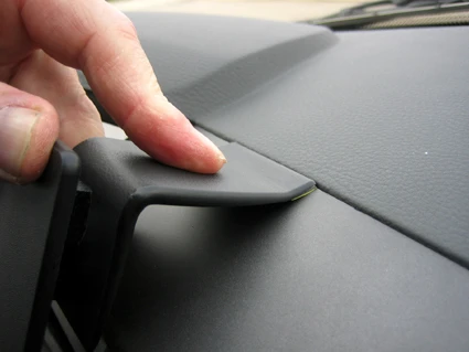 Press the gap opener into the gap between the frame surrounding the air vent and the dashboard. Press forwards on the lower part of the ProClip so the angled edge goes all the way into the gap next to the gap opener. Pull out the gap opener.