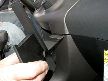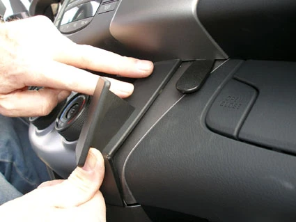 Press the angled edge on the lower part of the ProClip into the gap in the panel sections next to the glove compartment.