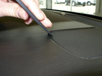 Peel off the cover of adhesive tape on the ProClip Press the curved edge on the ProClip into the gap between the speaker grill and the dashboard.