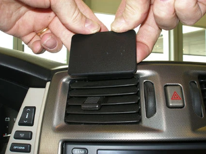 Flip the ProClip down towards the air vent. Place your index fingers behind the ProClip and pull the angled edge over the dashboard edge and hook it into the upper part of the air vent panel.