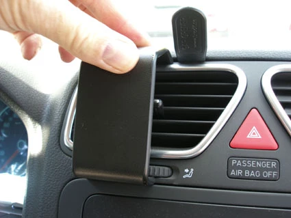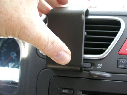 Press the gap opener into the gap between the frame surrounding the air vent and the dashboard. Press the gooved edge on the upper part of the ProClip into the gap next to the gap opener. Press until you hear/feel it snaps into place. Pull out the gap opener.