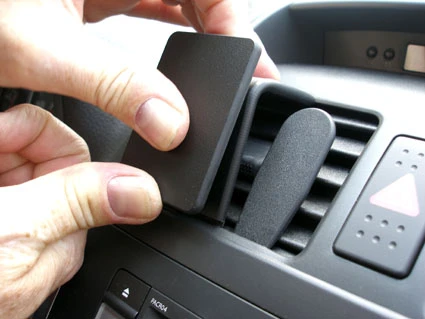 Place the upper edge of the ProClip, with adhesive tape, in the upper part of the air vent so the adhesive tape attaches.
