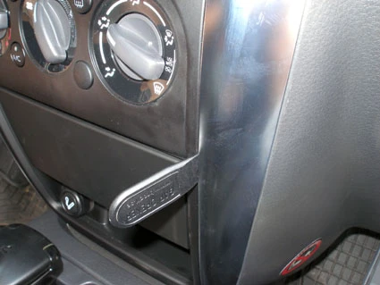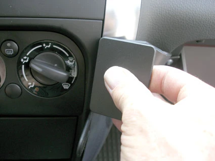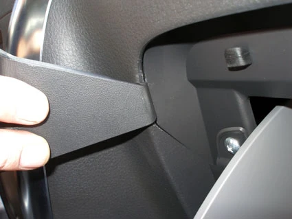 Press the thin end of the enclosed gap opener into the gap between the control panel and the surrounding frame, to widen the gap. Open the glove compartment. Peel off the cover of the adhesive tape on the ProClip.