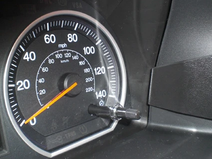 Use the enclosed alcohol pad to clean the area where the ProClip is to be installed. Peel off the cover of adhesive tape on the ProClip. Press the curved edge on the left side of the ProClip into the gap between the instrument window and the surrounding panel frame, towards the upper corner.