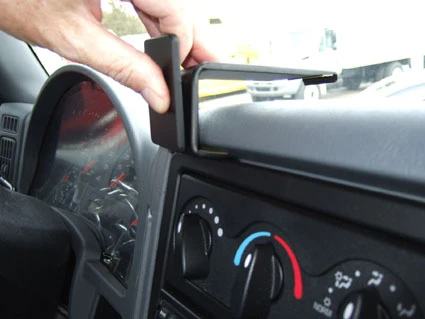 Press the angled edge on the lower part of the ProClip into the gap between the dashboard overhang and the center console panel frame.