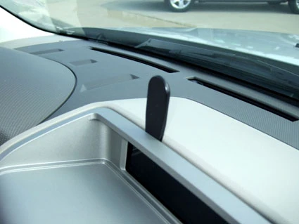 Press the thin end of the enclosed gap opener into the gap between the dashboard and the panel frame surrounding the information window, to widen it. Peel off the cover of adhesive tape on the ProClip.