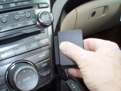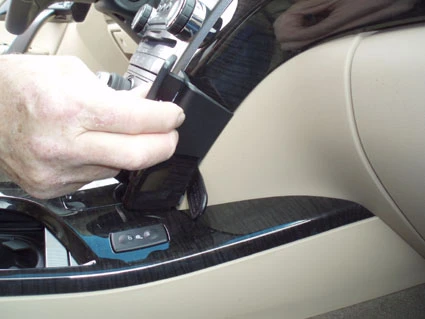 Press the gap opener into the gap between the center console side edge and the console sidewall. Press firmly forward on the right side of the ProClip so the angled edge goes into the gap above the gap opener. Press until you see or hear/feel it snaps into place. Pull out the gap opener.