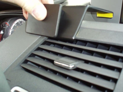 Peel off the cover of adhesive tape on the ProClip. Hook the angled edge on the lower part of the ProClip around the upper air vent edge.