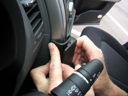 Hook the angled edge on the right part of the ProClip over the frame surrounding the stereo. Pull out the gap opener.