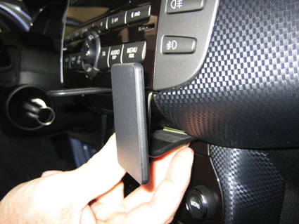 Press forward on the lower part of the ProClip so the angled lower edge hooks into the gap between the dashboard and the ocntrol panel.