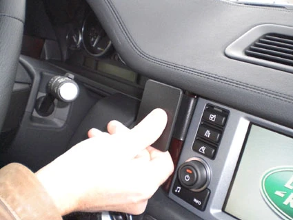 Peel off the adhesive tape cover on the ProClip. Place the angled edge on the right part of the ProClip into the gap between the control panel and the surrounding frame.