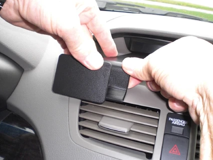 Place your fingers behind the front part of the ProClip. Pull the ProClip towards you and hook the angled edge around the air vent edge.