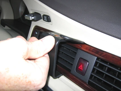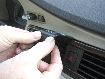 Press the gap opener into the gap between the frame surrounding the air vent and the dashboard. Press forwards on the upper part of the ProClip so the grooved edge goes into the gap next to the gap opener.