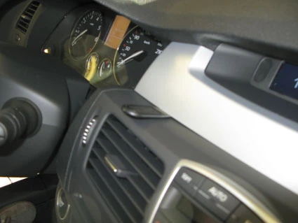 Press the grooved edge on the upper part of the ProClip into the gap between the dashboard overhang and the trim. Press until you hear/feel it snaps into place.