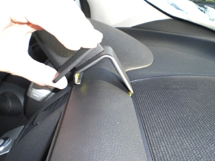 Push/pull the ProClip downward and hook the angled edge around the dashboard edge.