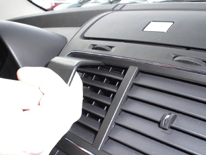 Peel off the cover of adhesive tape on the ProClip. Hook the grooved edge on the upper part of the ProClip onto the upper air vent edge.