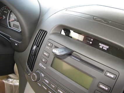 Press the thin end of the enclosed gap opener into the gap between the stereo and the dashboard ledge, to widen the gap. Peel off the cover of adhesive tape on the ProClip.