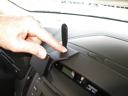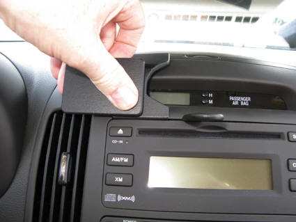 Press the gap opener into the seam/gap in the dashboard. Press firmly forward on the upper part of the ProClip face plate. The ProClip will now flex forward and the angled edge will go into the gap next to the gap opener. Then press down on top of the ProClip to make sure the angled edge is all the way down in the gap. Pull out the gap opener.