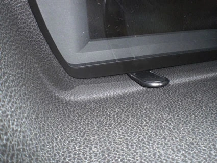 Press the thin end of the enclosed gap opener into the gap between the dashboard ledge and the information window panel frame, to widen the gap. Peel off the cover of adhesive tape on the ProClip.