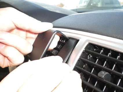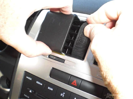 Press the gap opener into the gap between the air vent and the surrounding panel frame. Press the angled edge on the lower part of the ProClip upwards and then hook it into the gap next to the gap opener. Pull out the gap opener.