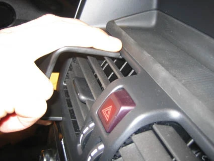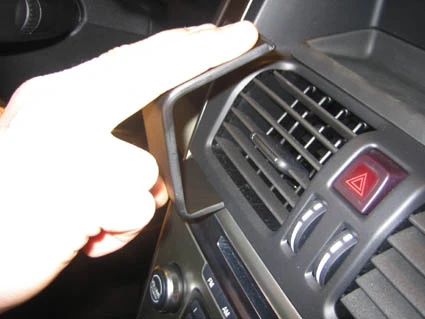 Press the curved edge on the lower part of the ProClip into the gap between the frame surrounding the air vent and the control panel.