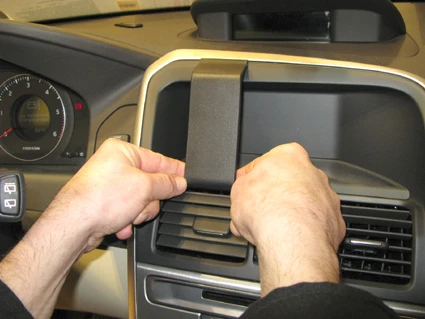 Pull the ProClip downward and then press it ward so the grooved edge hooks into the upper part of the air vent.