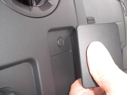 Press firmly forward on the right side of the ProClip so it flexes towards the gap openers and hooks around the panel edge between the gap openers. Press until you see or hear/feel it click into place. Pull out the gap openers.