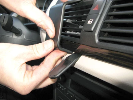 Press the gap opener into the gap between the frame surrounding the air vent and the dashboard. Press forward on the upper part of the ProClip so the angled edge hooks into the gap next to the gap opener.