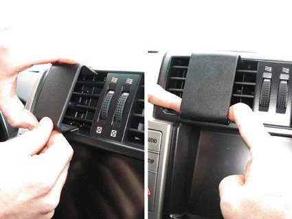 Press the lower part of the ProClip upward/forward and hook the angled edge into the lower part of the air vent. Press down on the lower part of the ProClip so the adhesive tape attaches.