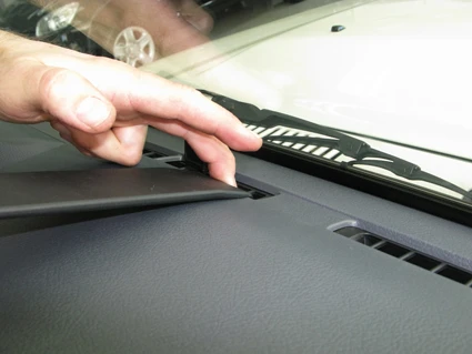 Pull the ProClip toward you and hook the angled edge on the lower part under the dashboard overhang.