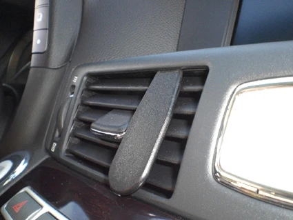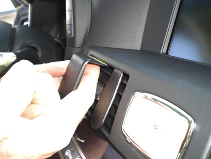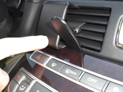 Press the gap opener into the seam/gap between the frame surrounding the air vent and the dashboard trim. Press firmly forward on the lower part of the ProClip so the angled edge goes into the gap next to the gap opener. Pull out the gap opener.