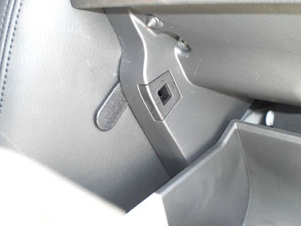 Hold the ProClip in an almost 45 degree angle and press/hook the angled right edge into the gap above the gap opener. Flip/push the ProClip to the left so the angled edge on the right side of the ProClip hooks behind the glove compartment frame.