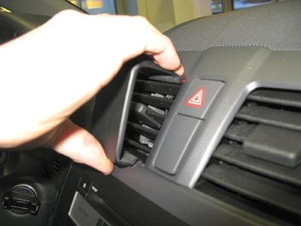 Release the pressure so the angled upper edge hooks under the frame surrounding the air vent.