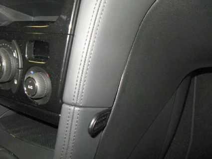 Press the curved edge on the right part of the ProClip into the gap next to the gap opener. Flip the ProClip leftward, toward the steering wheel, so the curved right edge hooks into the gap.