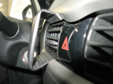 Press the upper part of the ProClip downward, and then forward. Hook the angled upper edge of the ProClip under the center console edge. Pull out the gap opener.