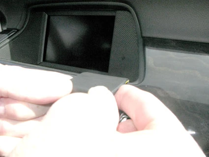 Pull the upper part of the ProClip upward, then press it forward. Hook the angled upper edge into the gap between the panel surrounding the air vent and the frame surrounding the display.