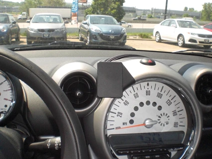 Place/hook the angled edge on the lower part of the ProClip around the instrument panel frame edge.