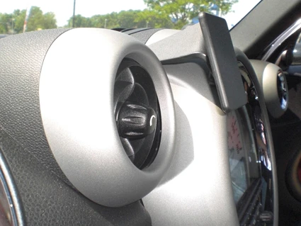 Press the thin end of the enclosed gap opener into the gap between the two dashboard sections, to widen the gap. Use the enclosed alcohol pad to clean the area where the ProClip is to be installed. Peel off the adhesive tape cover on the ProClip.