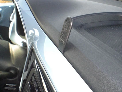 Use the enclosed alcohol pad to clean the area where the ProClip is to be installed. Press the thin end of the enclosed gap opener into the gap between the center console panel frame and the dashboard, to widen the gap. Peel off the cover of adhesive tape on the ProClip.